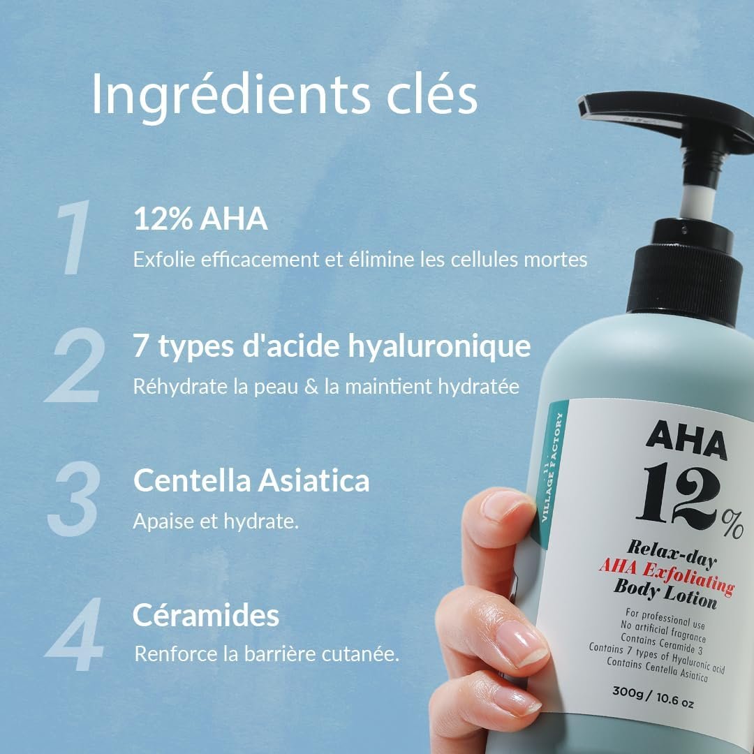 ![[VILLAGE11FACTORY] RELAX DAY AHA EXFOLIATING BODY LOTION (300 g) Soin coréen - Lotion Corps Exfoliante & Hydratante avec 12% d'Acide Glycolique - Elimine en douceur les cellules mortes – Image 2](https://gadjo.store/wp-content/uploads/2025/01/61nCH3ZHgmL._AC_SL1080_.jpg)
